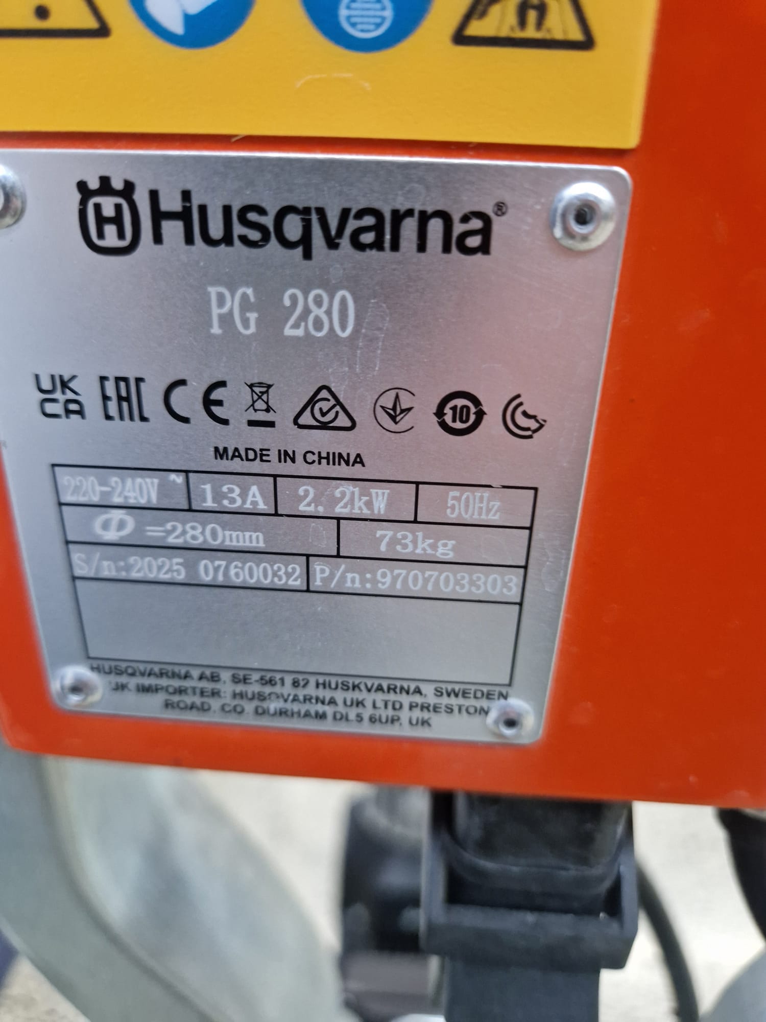 Technische Daten – Husqvarna PG 280