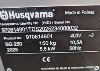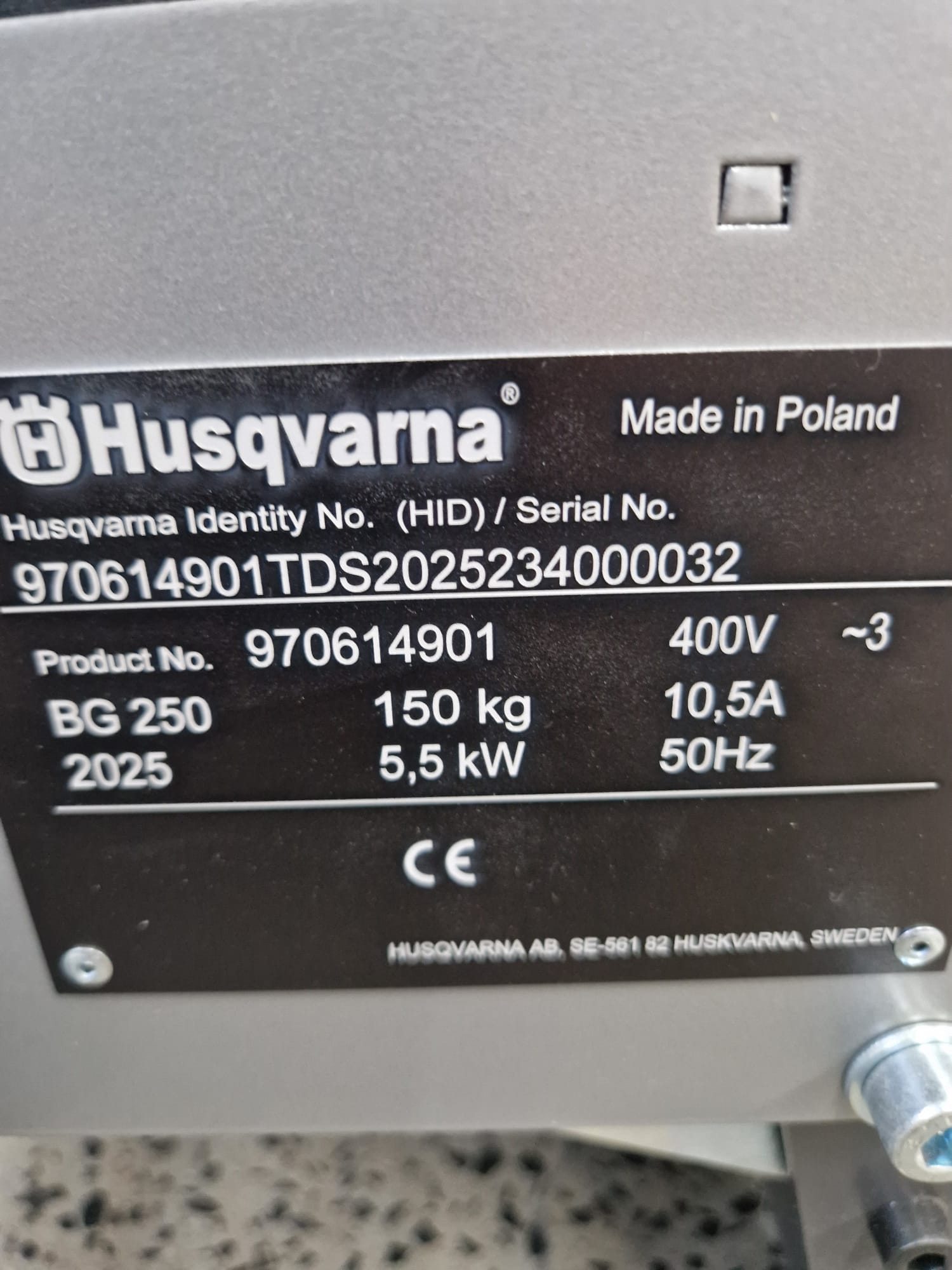 Die Husqvarna BG 250 ist eine robuste, leistungsstarke 250-mm Bodenschleifmaschine, die speziell für das Entfernen von Beschichtungen, Kleberresten, Spachtelmassen und für das Schleifen von Betonoberflächen entwickelt wurde. Mit ihrem kraftvollen 5,5-kW-Motor und dem 400-V-Antrieb eignet sie sich ideal für professionelle Anwender im Bau- und Sanierungsbereich.